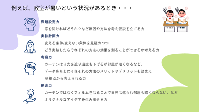 ▲探究スキルを定義だけでなく具体的な状況で説明するシート