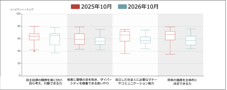 ▲「Ai GROW」の管理画面では、個人や集団の成長を自校のスクール・ポリシー・ベースで確認することも可能